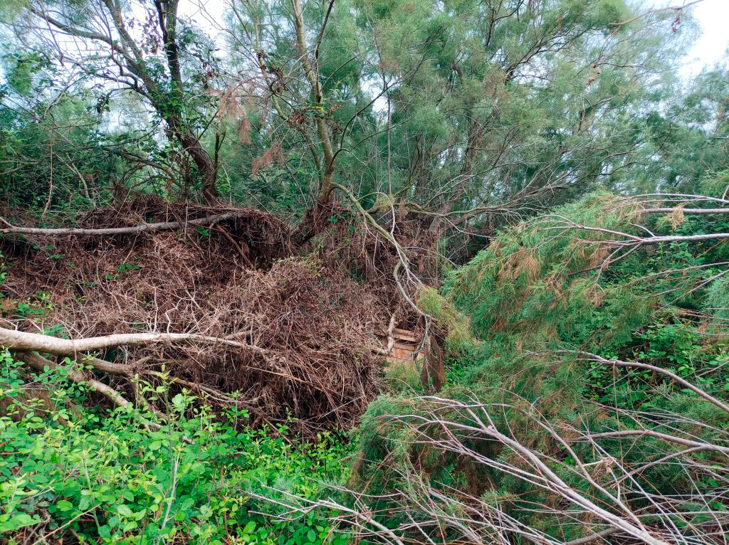 Bei Feldbegehungen stellte GOB Menorca verschiedene Hindernisse im Bachbett fest: Bäume, die mitten im Wasserlauf wuchsen, tote Stämme und querliegende Äste, hauptsächlich von Tamarisken, Mastixsträuchern, wilden Olivenbäumen und Brombeeren. Bei Starkregen wirken diese Pflanzenbestände wie Barrieren, die den Wasserfluss zum Camí de Cavalls und zu den Salinen umleiten.