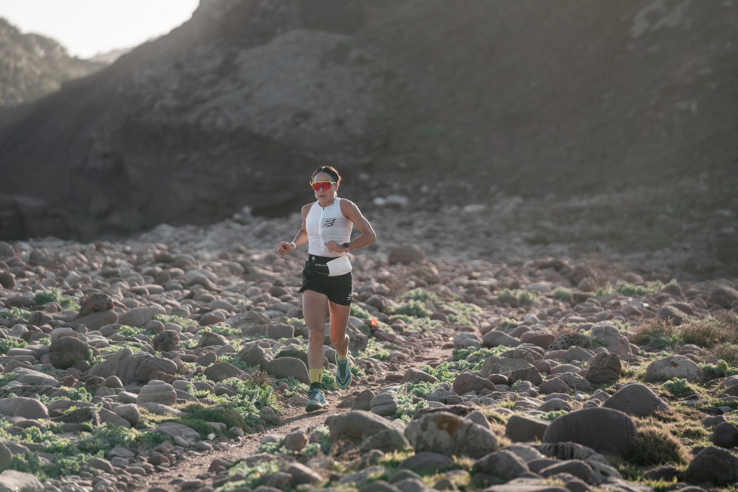 Oihana Kortazar won the women’s category, as she had been doing throughout the entire competition. She was the fifth athlete overall to reach Cala Galdana, nearly a half hour ahead of the second woman to finish the route.